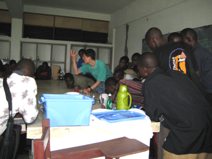 - University of Liberia. At the Fendall Campus of UL we taught a biology class about DNA (with demos, of course!), a physics class about electricity (also with demos). We had a "town hall" meeting with chemistry and biology students, in which we encouraged them to set up an outreach program in which they teach science classes at a local high school. We also helped the students organize a fundraising effort targeting alumni. We hope to set up a science fair in which meritorious senior thesis projects are published in the newly created online journal, The Liberian Scientist. Possible future collaboration includes visits by foreign scientists to run "master classes" with the faculty at UL.